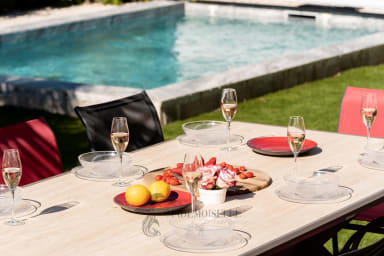 Mademoiselle Conciergerie welcomes you to Villa Amphitrite. Just a 5-minute walk from the beach, enjoy precious moments with family and friends around the pool, BBQ, pétanque court and foosball table. Filled with natural light, this modern and warm villa invites you to share unforgettable moments, with a beautiful ground-floor master bedroom for added comfort and relaxation.