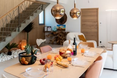 At Villa Amphitrite, everything invites you to slow down, reconnect and fully enjoy your holidays. Just a 5-minute walk from the beach, this modern, bright and welcoming villa offers the perfect setting to share special moments with family and friends, from beach days to outdoor dining, pétanque games, foosball fun and soft summer evenings.