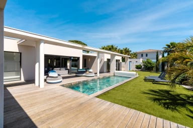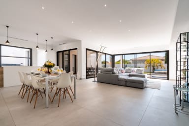 Mademoiselle Conciergerie vous accueille à la Villa Boston, une villa californienne moderne située à Agde, à seulement 10 minutes à pied des plages du Grau d’Agde et du Cap. Appréciez son grand jardin paysager avec piscine, salon d’été et espace plancha, son vaste salon lumineux avec canapé XXL, ses 4 chambres dont 2 master élégantes, et sa grande cuisine américaine au style épuré.