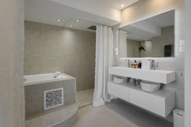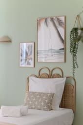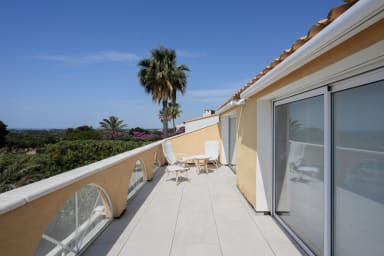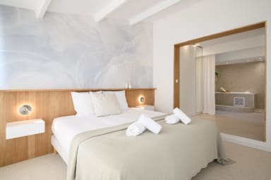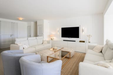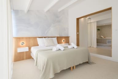 Cette demeure se dévoile avec 6 chambres conçues pour le repos et l’intimité. La suite parentale avec balcon offre un spectacle saisissant sur la mer ; les autres chambres — deux avec lits Queen Size et trois avec lits simples — s’adaptent à toutes les configurations familiales, bébé ou adolescent inclus.