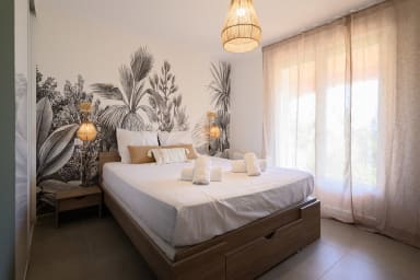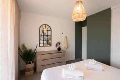 Mademoiselle Conciergerie vous accueille à la Villa Halo, écrin provençal niché sur les hauteurs d’Agde. Profitez du jardin paysager avec piscine lagon chauffée, idéale pour la détente. La villa offre 6 chambres, dont une suite parentale avec balcon, et une salle de cinéma avec bar pour des soirées sereines. Tranquillité et confort vous attendent.