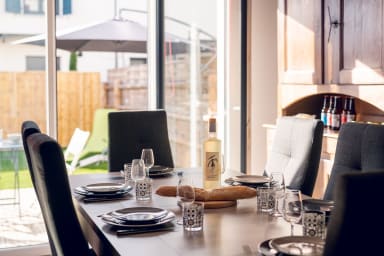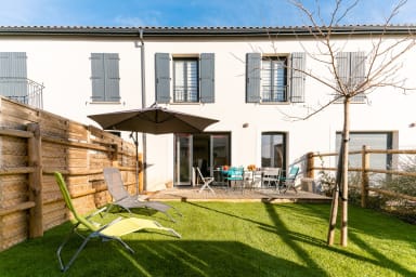De retour à la villa, on profite d’un cadre serein : vaste terrasse pour les dîners sous les étoiles, jardin verdoyant pour jouer ou bouquiner, et deux places de stationnement privées pour un quotidien sans stress. Boutiques, boulangerie, primeurs, restaurants et services sont accessibles en quelques minutes.