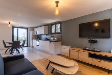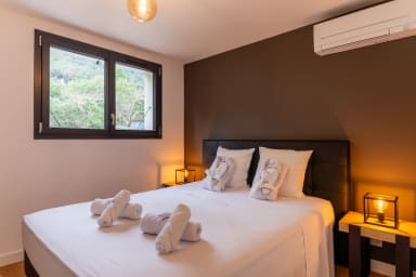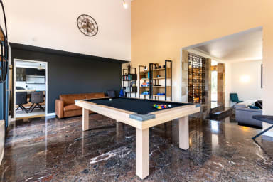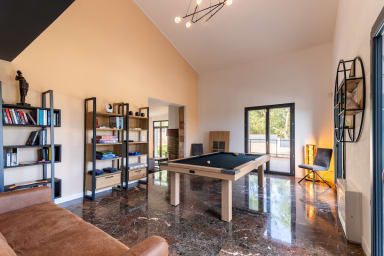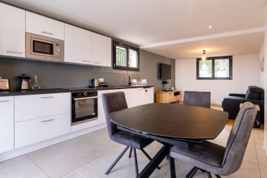 La maison principale réunit 4 chambres spacieuses dont un dortoir et une cuisine entièrement équipée pour cuisiner à plusieurs, improviser un buffet ou confier un dîner à un chef. Un appartement indépendant (2 chambres, cuisine, salon, salle de douche, WC séparé) offre une vraie bulle d’intimité pour les amis, les grands-parents ou les ados. Partout, la circulation dedans/dehors est fluide : terrasses généreuses pour les grandes tablées, coins lounge pour prolonger la soirée.