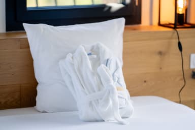 À l’arrivée, des box petit-déjeuner offertes vous attendent ; nous pouvons aussi faire livrer des brunchs et petits-déjeuners à la carte. Service de ménage régulier possible pendant le séjour (un passage offert pour les séjours de 7 nuits minimum).