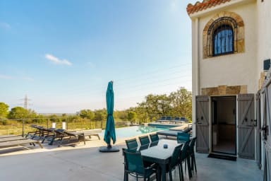 Mademoiselle Conciergerie vous accueille au Mas Sureda, domaine privé entre mer et nature à Argelès-sur-Mer, avec vue Méditerranée. Vivez le resort : piscines reliées (intérieure chauffée toute l’année), terrain de foot, grand boulodrome, billard et babyfoot. Appartement indépendant, box petit-déj offert, grand parking — tout est prêt pour des moments ensemble, version XXL.