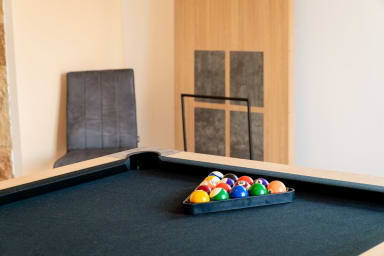 Côté loisirs, le Mas joue la carte du fun chic : terrain de foot pour les matches improvisés, grand boulodrome pour des parties conviviales, billard et babyfoot pour les duels en intérieur. Autour du brasero, on refait la journée en regardant les piscines scintiller ; un grand parking facilite l’arrivée de tous.