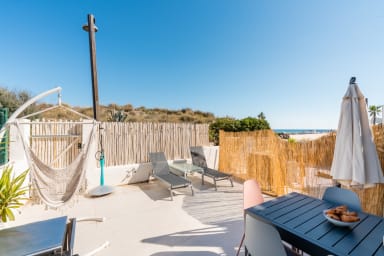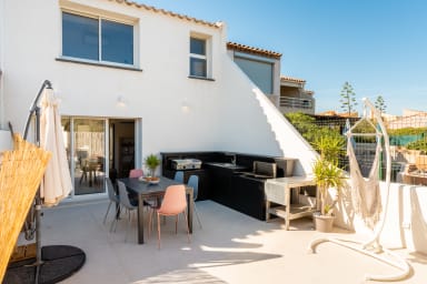 On ne peut pas faire plus près : Mademoiselle Conciergerie présente Villa Roquille, entièrement rénovée en 2025, dans une résidence privée et sécurisée du Cap d’Agde. Portillon de terrasse avec accès direct à la plage, suite parentale à l’étage avec vue mer depuis le lit, seconde suite au RDC. Grand séjour avec îlot, terrasse 30 m², cuisine d’été plancha & barbecue. TV Samsung Frame 65'' + Sonos.